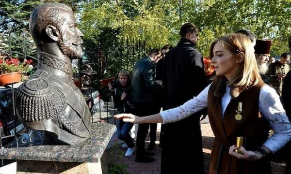 Poklonskaja heeft zich al eerder opgeworpen als een soort belangenbehartiger van Nicolaas II. Zo kwam zij vorig jaar bij de herdenking van slachtoffers van de Tweede Wereldoorlog opdraven met een afbeelding van de ruim voor die oorlog vermoorde tsaar. Dat gaf nogal wat ophef, net als nu haar mededeling over het vochtverlies van de tsaar in Simferopol. Het inspireerde de Oekraïense groep Mirko Sablitsj tot onderstaand lied, waarin nadrukkelijk wordt gesuggereerd dat de obsessie van het parlementslid met Nicolaas II niet zozeer voortvloeit uit religieuze gevoelens, maar veeleer een kwestie is van hormonen.